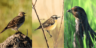 Jahresvögel auf dem Land - wissenswerte Informationen über Feldlerche, Braunkehlchen und Rebhuhn, sowie über ihre Probleme in der heutigen Landwirtschaft.