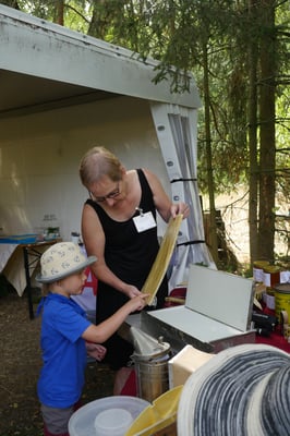 Fotos: (K. Geilen) Imkerin Ingrid Vorholt erklärt wissenswertes über Bienen und die Honigherstellung