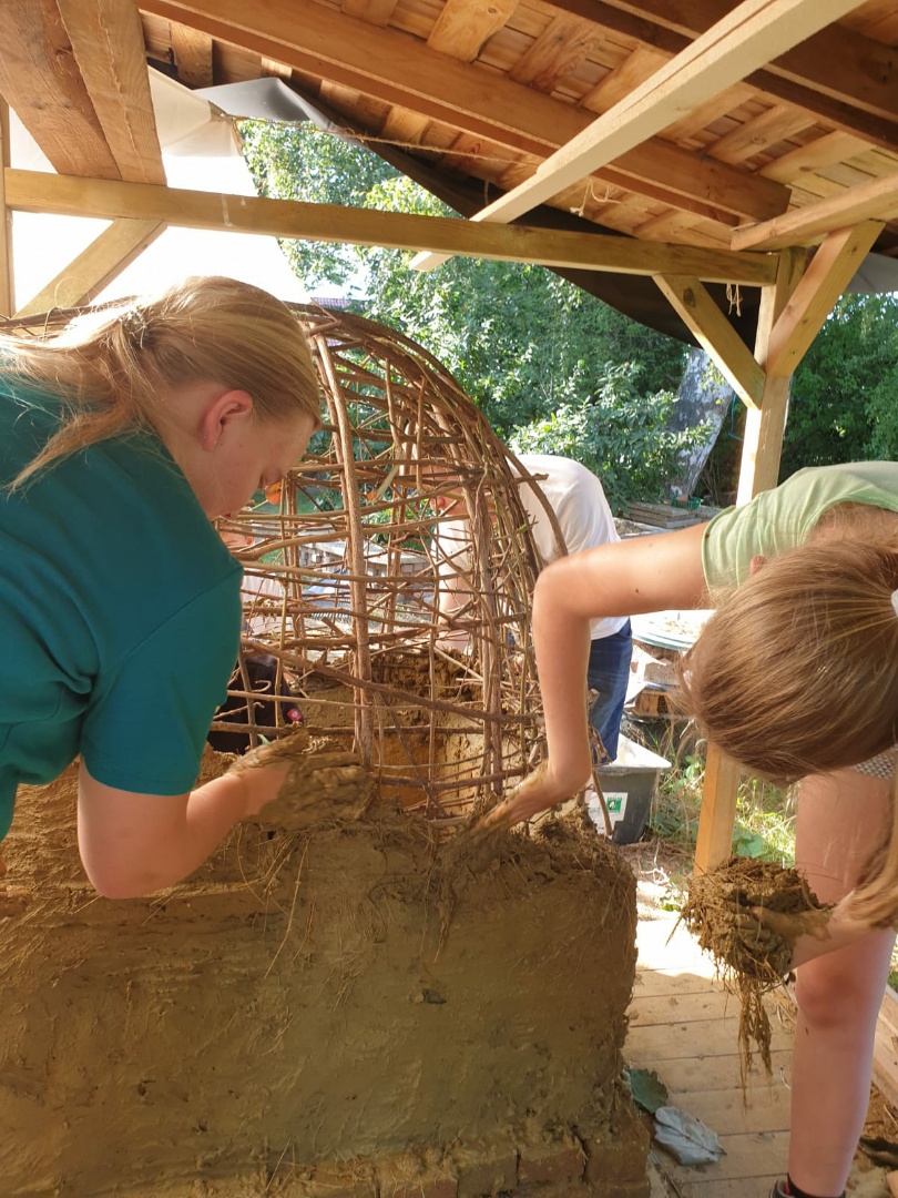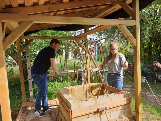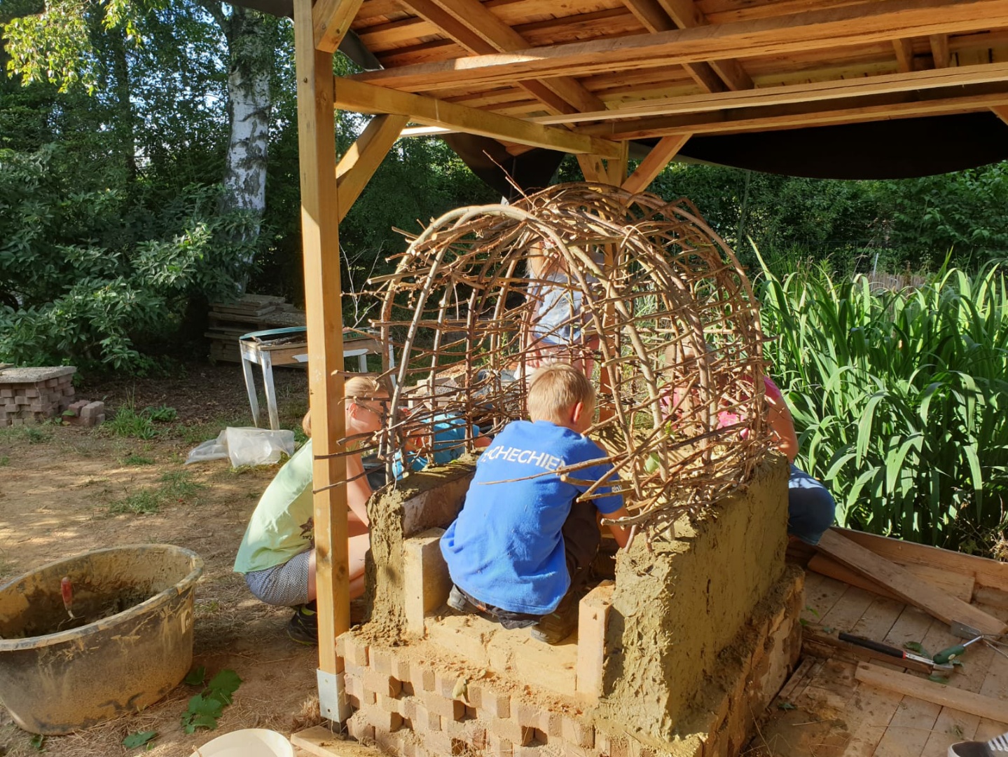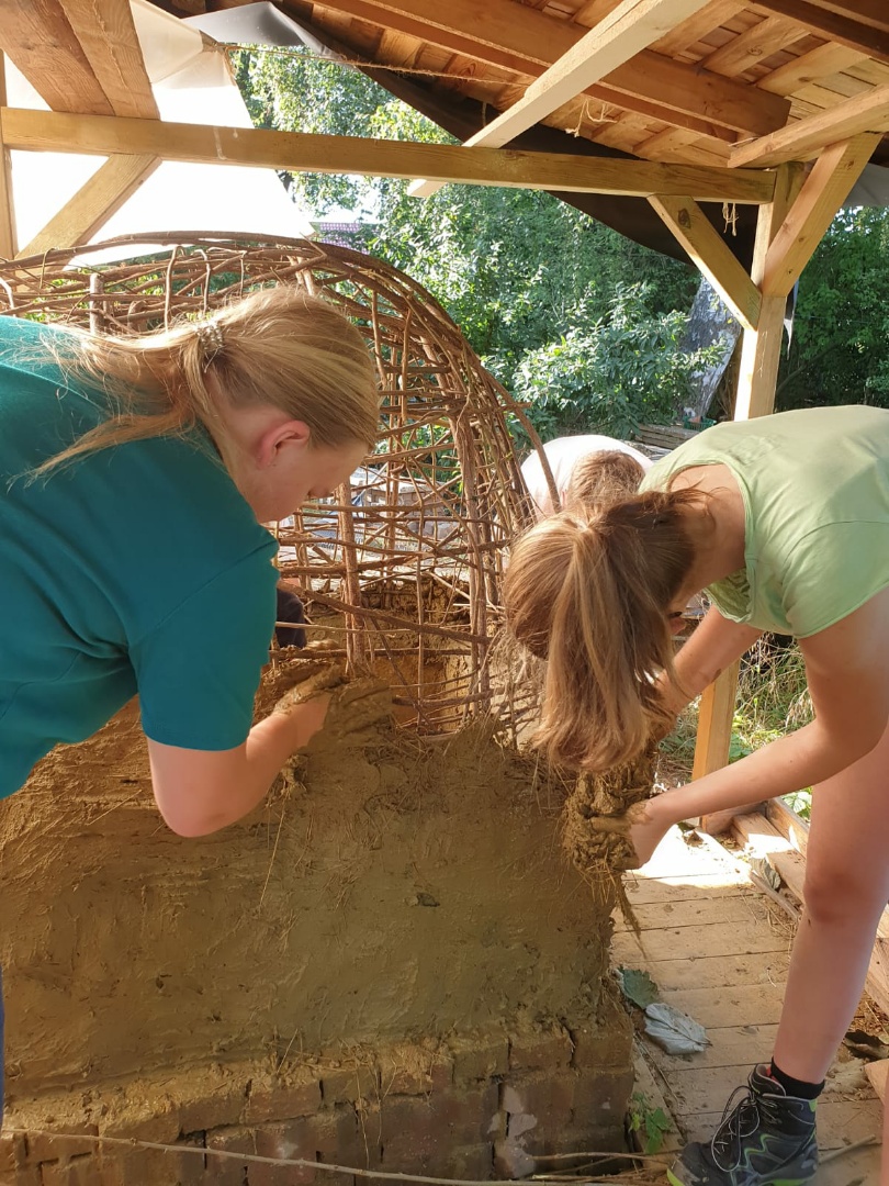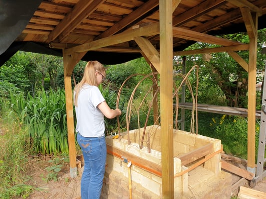 Der Bau des Lehmbackofens schreitet voran - Juni 2020