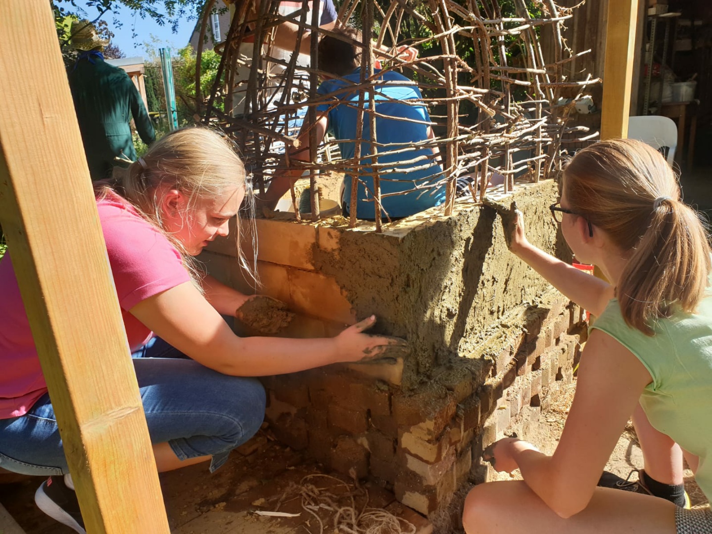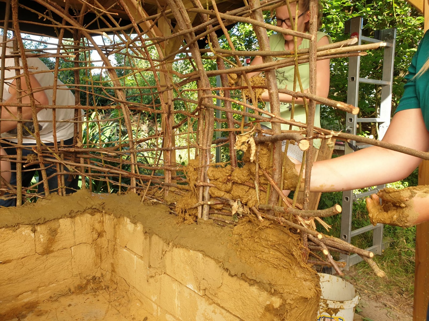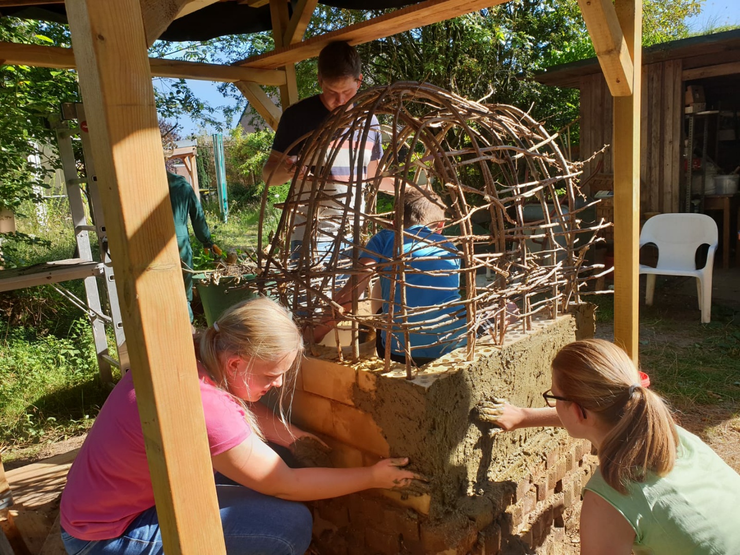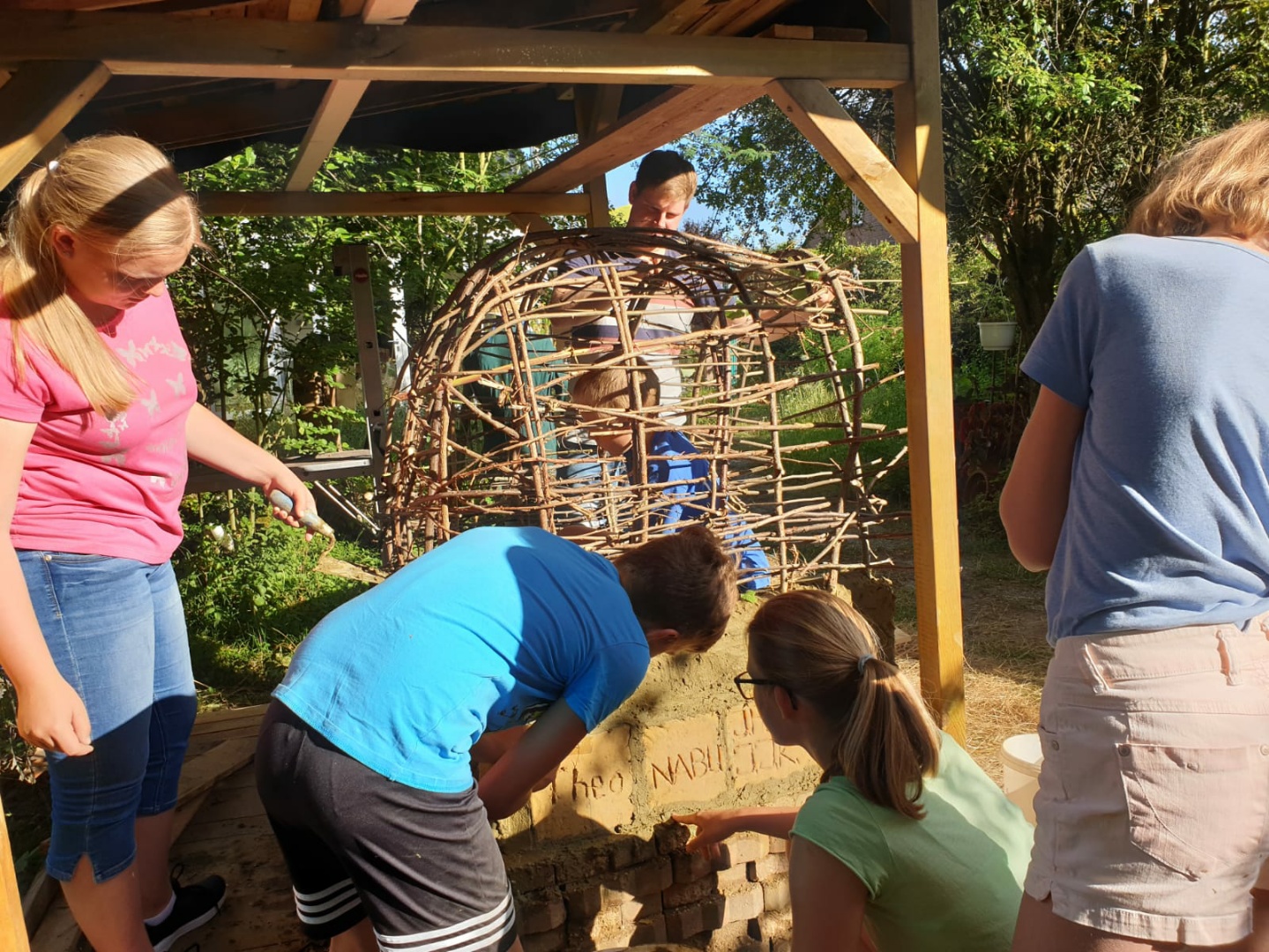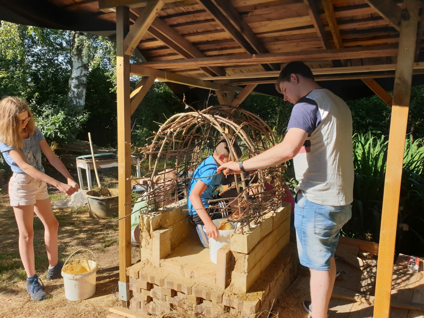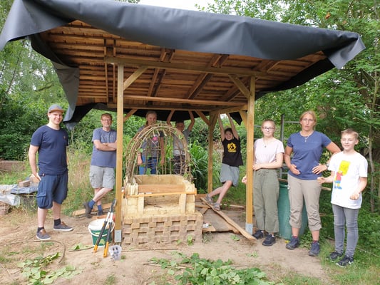 Die Gelegenheit haben wir genutzt, um unseren Lehmbackofen nach fast zwei Jahren Bauzeit mit einer Pizzabackaktion endlich in Betrieb zu nehmen. Die Pizzen sind ausgezeichnet gelungen und haben allen Beteiligten vorzüglich geschmeckt. Zu den Beteiligten zählten auch Jugendliche der Lebenshilfe, die wir zum Anlass der Ofeneinweihung zu einem Kennernlerntreffen eingeladen hatten. Wir freuen uns über den Zuwachs in unserer Gruppe und in der Zukunft auf spannende gemeinsame Aktivitäten. Zum Beispiel die Dachbegrünung für das Überdach des Lehmbackofens.