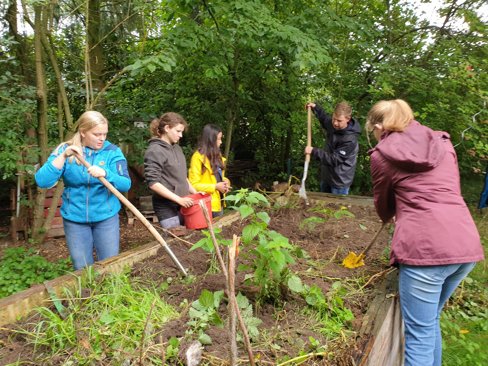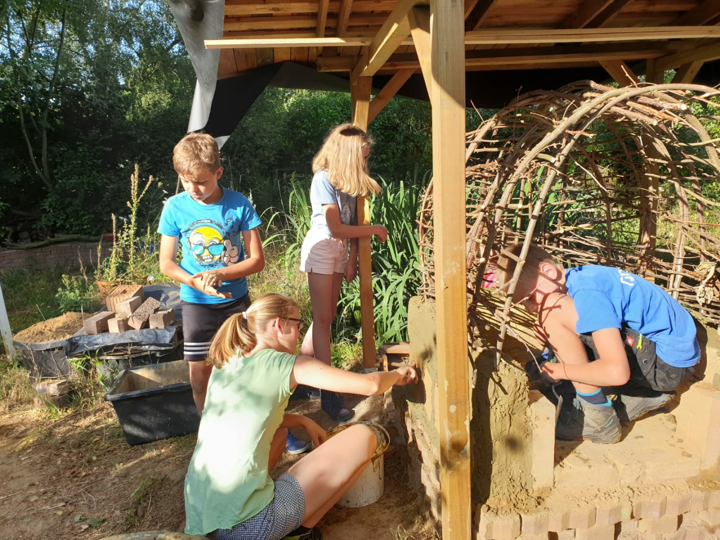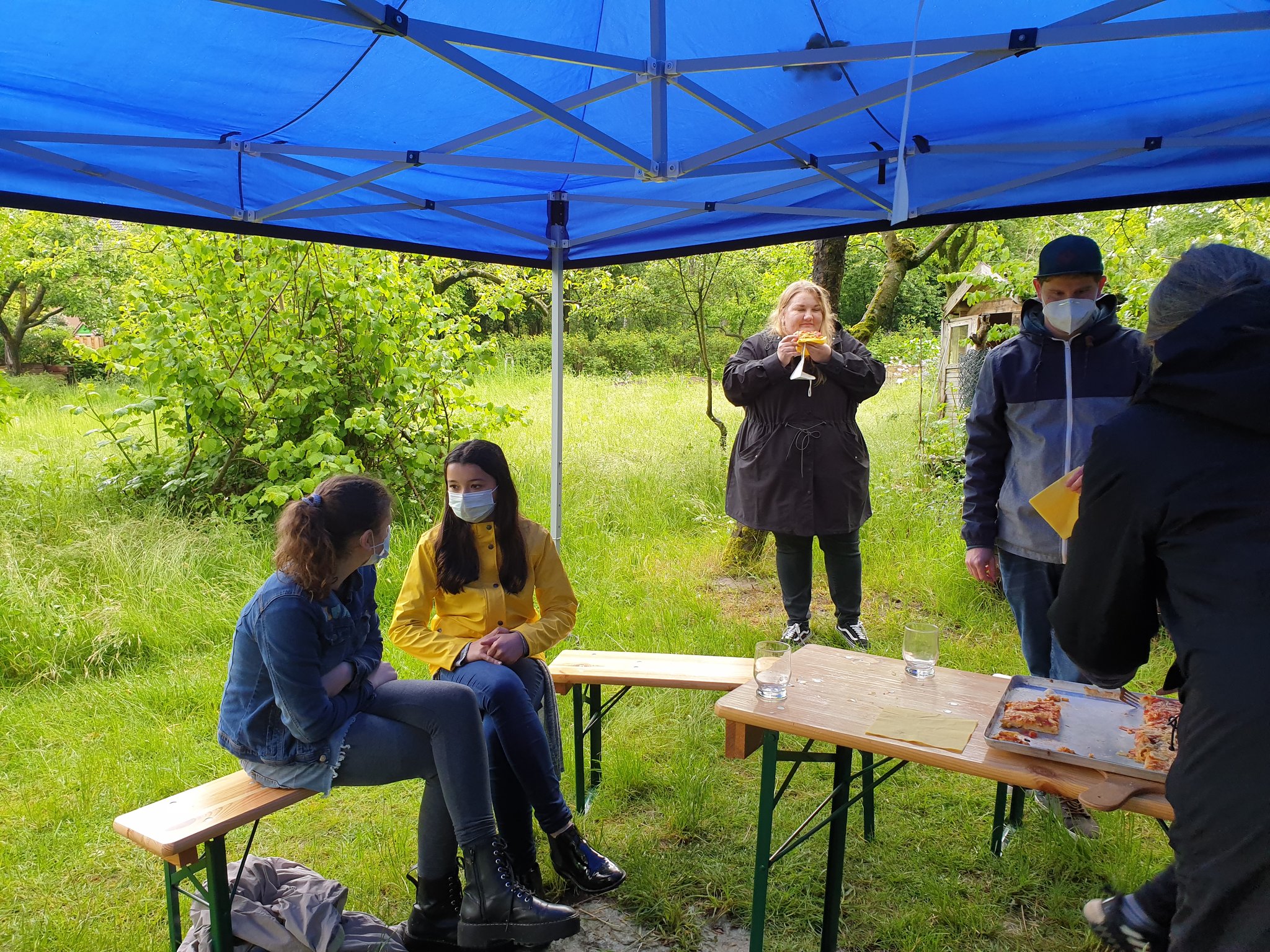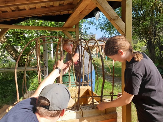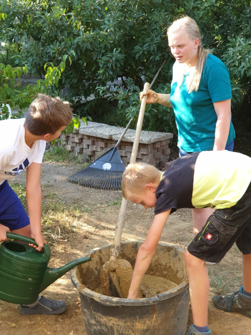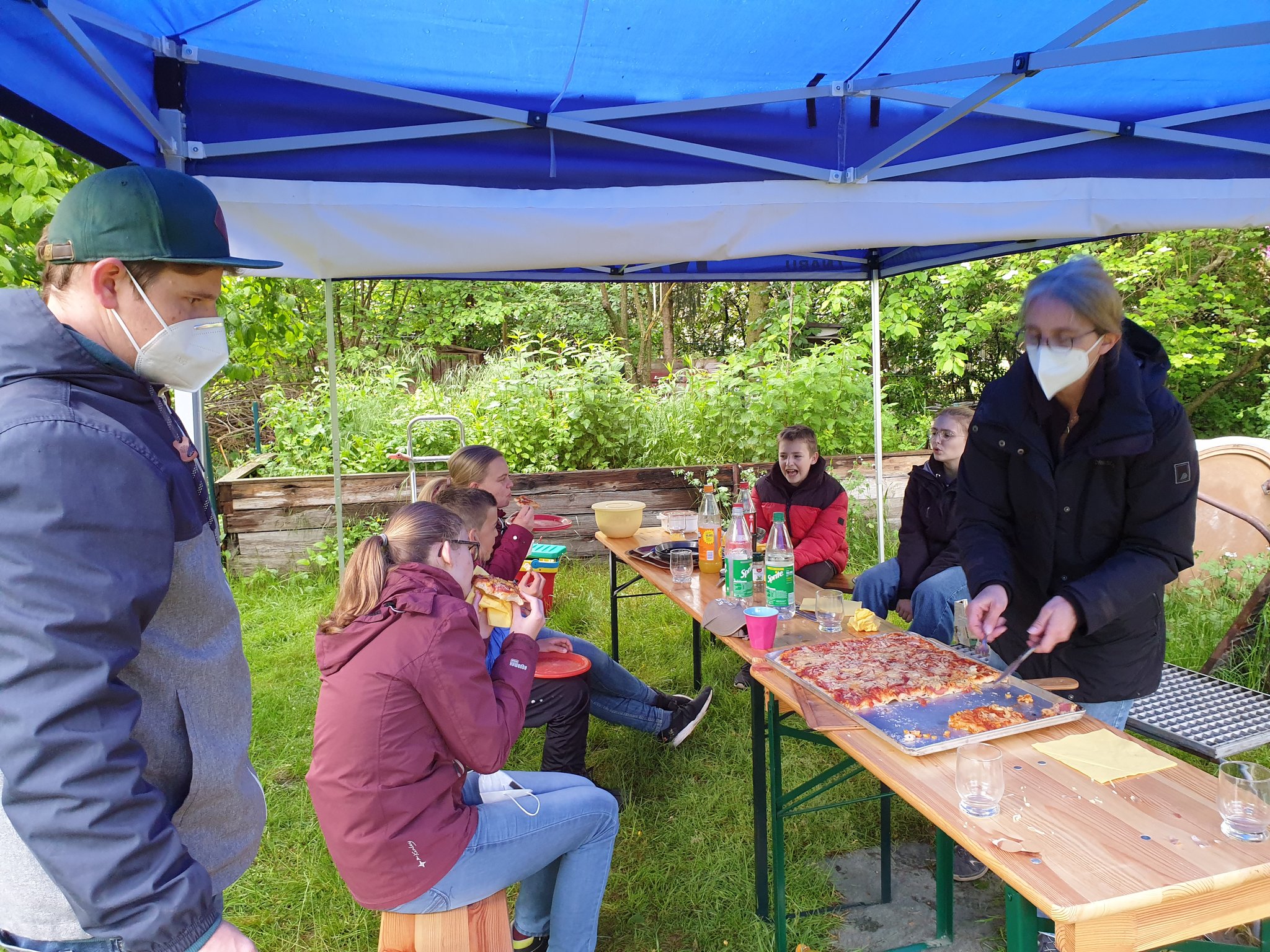 Die Gelegenheit haben wir genutzt, um unseren Lehmbackofen nach fast zwei Jahren Bauzeit mit einer Pizzabackaktion endlich in Betrieb zu nehmen. Die Pizzen sind ausgezeichnet gelungen und haben allen Beteiligten vorzüglich geschmeckt. Zu den Beteiligten zählten auch Jugendliche der Lebenshilfe, die wir zum Anlass der Ofeneinweihung zu einem Kennernlerntreffen eingeladen hatten. Wir freuen uns über den Zuwachs in unserer Gruppe und in der Zukunft auf spannende gemeinsame Aktivitäten. Zum Beispiel die Dachbegrünung für das Überdach des Lehmbackofens.