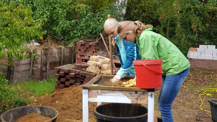 Der Bau des Lehmbackofens schreitet mit Riesenschritten fort. Es wurde Lehm gesiebt, Sand gekarrt und Steine gelegt. Am kommenden Donnerstag, 03. Oktober geht es weiter, ja, auch am Feiertag, haben die Kinder entschieden. Die Fotos sollen zum Mitmachen einladen, die beigefügte Einladung gilt auch für den nächsten Monat.