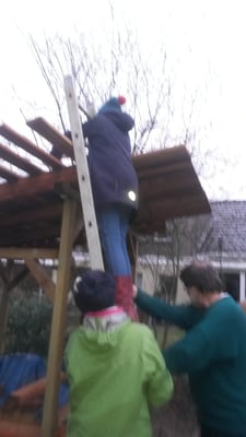 Fotos: (T. Manns) Der Unterstand wird gebaut.