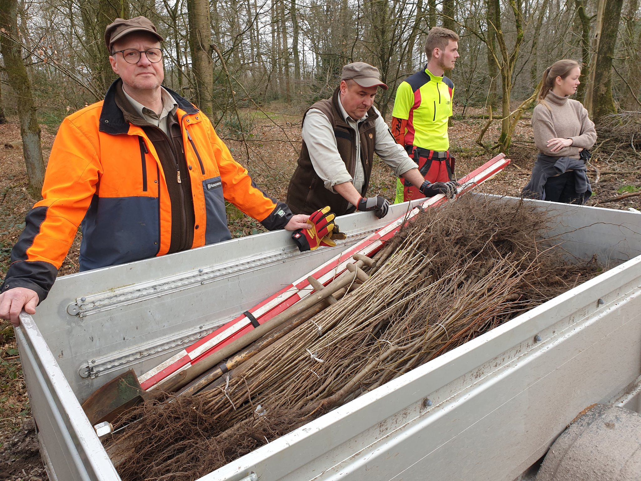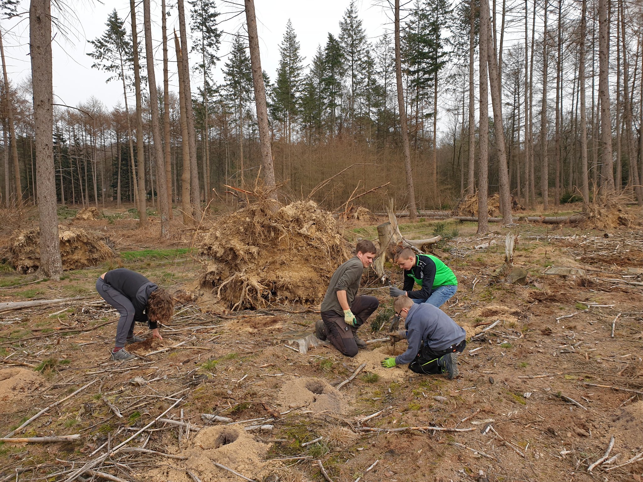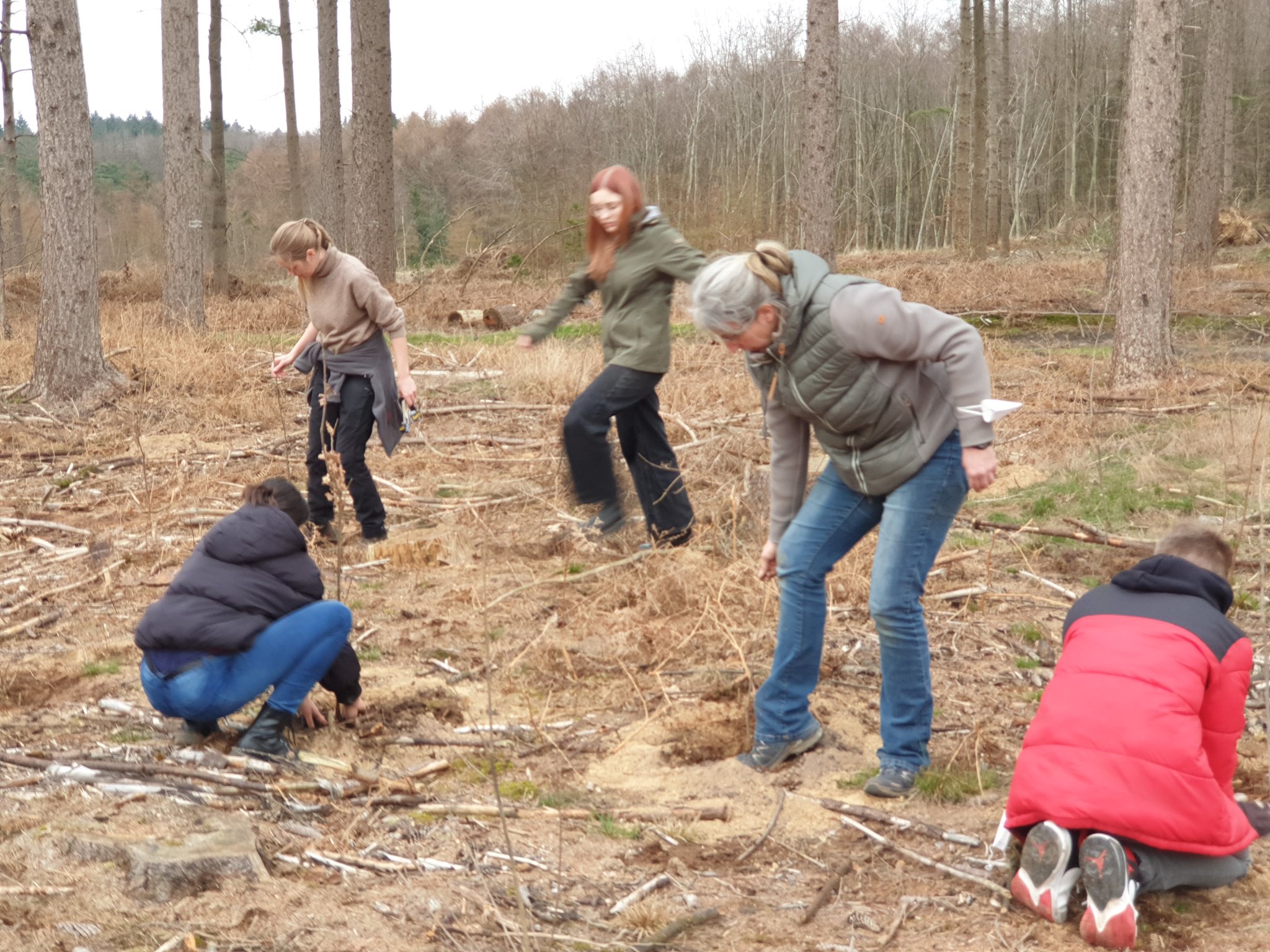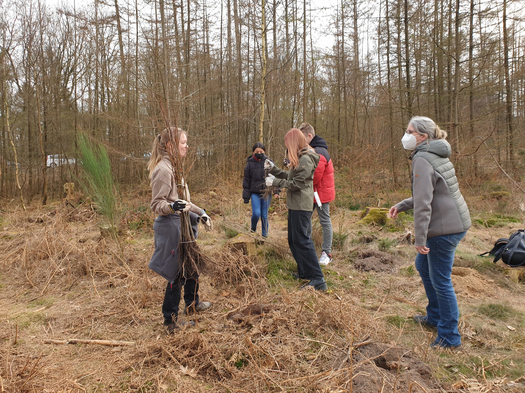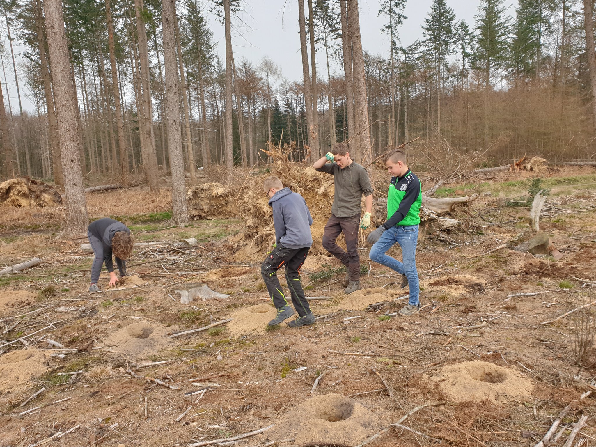 Im Rahmen des Projektes "Climate Action for Nature" der NAJU wird aufmerksam gemacht auf die Klima- und Artenkrise und selbst mit Naturschutzeinsätzen praktisch etwas dagegen getan. In einem solchen praktischen Einsatz haben wir am 16.03.2022 zur Wiederbewaldung einer kahlen Fläche in der Hohen Mark in Kooperation mit dem Regionalverband Ruhr 700 Bäume gepflanzt, die zu einem klimastabilen Mischwald der Zukunft beitragen sollen. Fotos: C. de Marco; Theo Manns