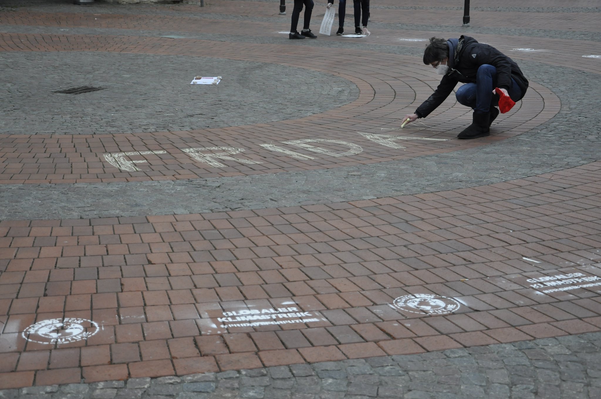 Am Samstag, 19.03. war wieder Globaler Klimastreik. Wir waren mit einer coronakonformen Straßenmalaktion auf dem Halterner Marktplatz dabei, um für unsere Zukunft zu streiken. Wir haben Forderungen und Motive zum Klimawandel auf den Marktplatz gemalt und gesprüht. #NoMoreEmptyPromises