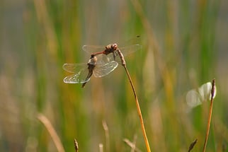 Hier ist ein Paar der Blutroten Heidelibelle, am 18.08.2016, im Landeanflug.