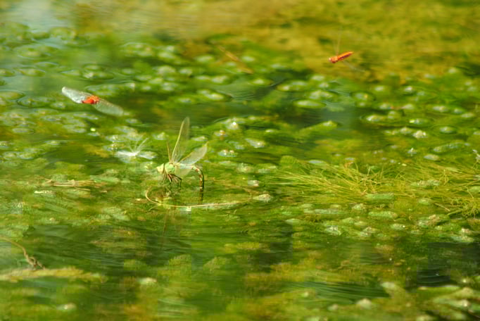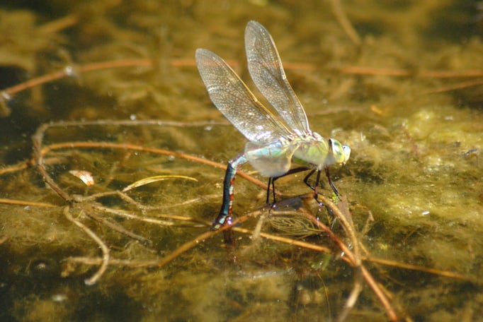 Während der Eiablage kamen immer wieder Männchen anderer Libellenarten, wie z.B. Azurjunfern, die um ein vielfaches kleiner sind, um mal kurz nachzuschauen ob man nicht etwas Wichtiges verpasst.