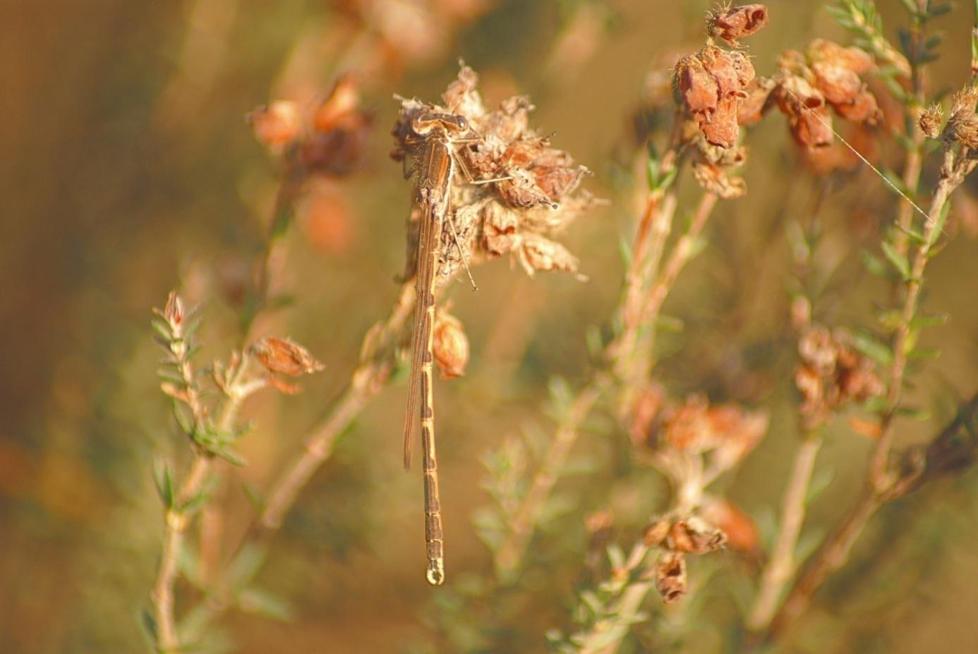 Am selben Tag, wie die Winterlibelle habe ich drei Kleine Binsenjungfern entdeckt und im Gegensatz zur Erstgenannten endete das irdische Dasein der Binsenjungfern an diesem Tag. Die Kleine Binsenjungfer hat einen ganz anderen Lebenslauf, als die Winterlibelle.