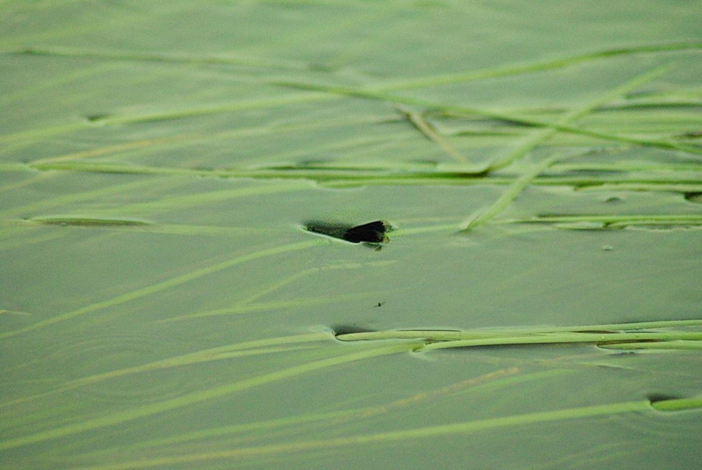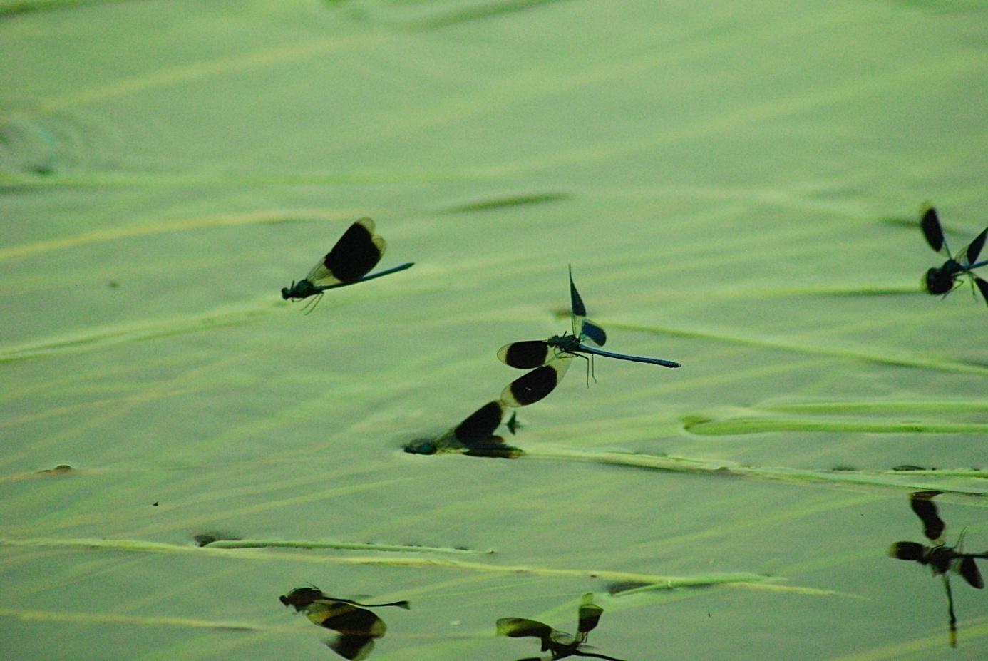 (4)Erst, wenn die Libelle fast komplett verschwunden ist, lassen die anderen Männchen von ihr ab. Ob Männchen als Ablenkungsmanöver für Fische dienen sollen, um das „wichtigere“ Weibchen zu schützen?