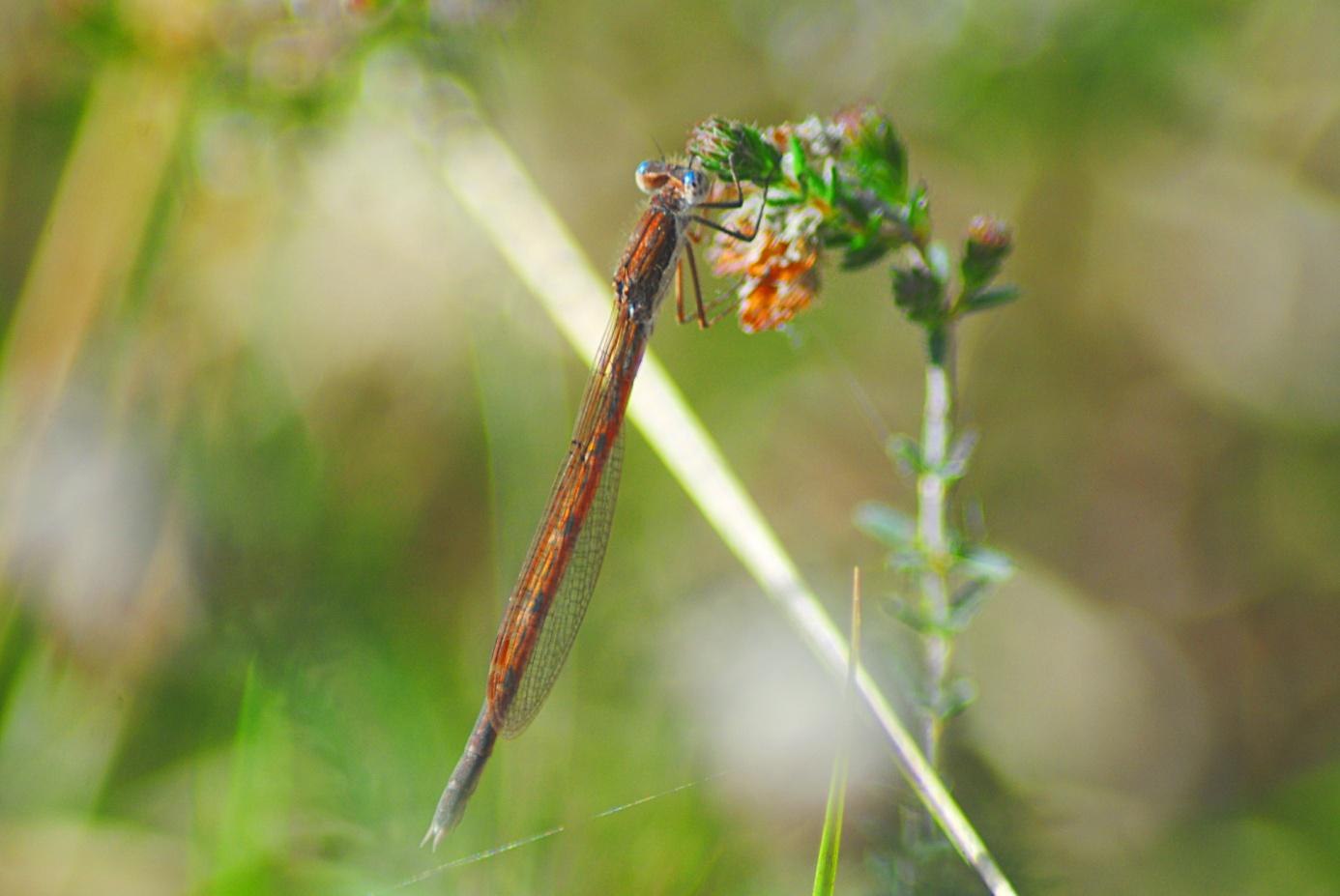 Eine weitere Kleinlibelle zeigte sich am 12.07.2016. Späte Adonislibelle, Zarte Rubinjunfer oder Scharlachlibelle sind ihre deutschen Namen, der lateinische Name lautet Ceriagrion tenellum.