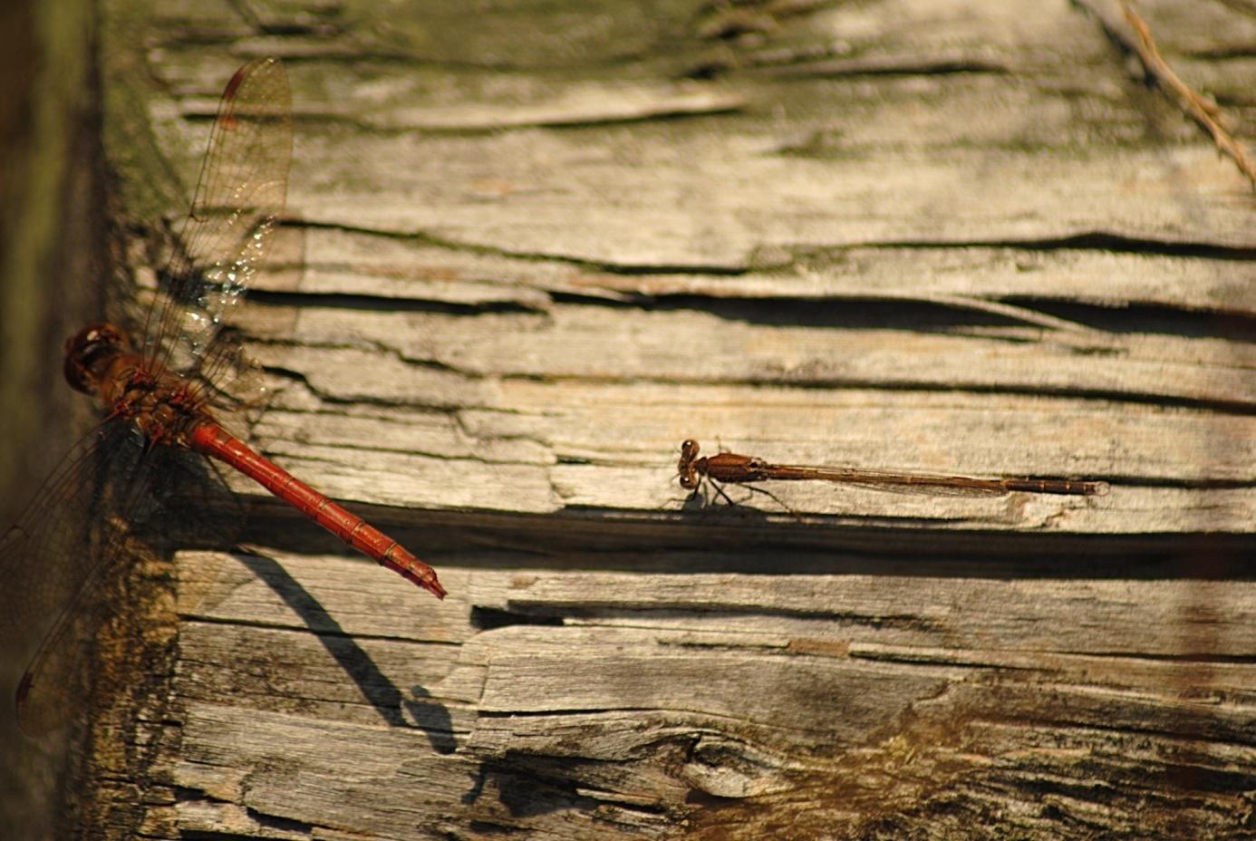 (4)01.11. Das Bild mit der männlichen Heidelibelle zeigt, dass eine Winterlibelle ständig auf der Hut sein muss und dabei hilft ihr ihre Tarnung und das Verhalten regungslos zu verharren. Sollte sie auffliegen, wäre es möglicherweise um sie geschehen.