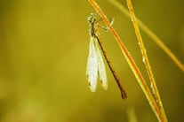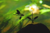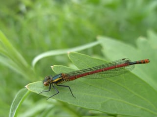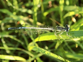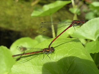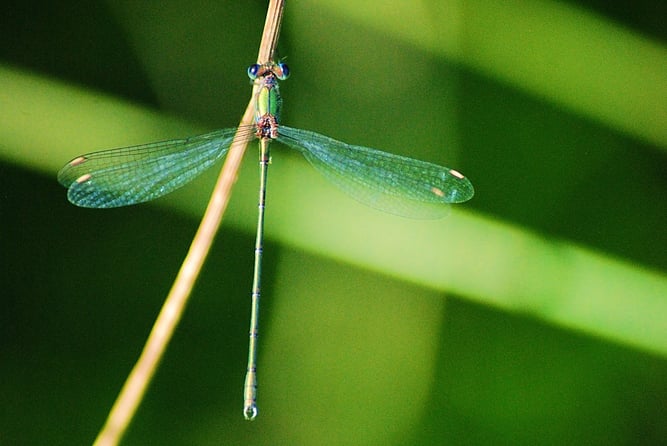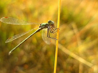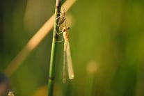 Binsenjungfern legen ihre Eier in Hohlstängeln, die dort überwintern. Im Frühling schlüpfen die Larven, die sich nach ein paar Monaten schon zur Libelle wandeln.