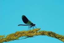 Prachtlibellen entwickeln sich ausschließlich in Fließgewässern. Aber als „jugendliche“ Insekten streifen sie noch umher und tauchen dabei auch an so manchem stehenden Gewässer auf.