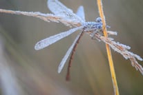 Auch dieses Männchen hat es „kalt“ erwischt. Alle Drei gezeigten Libellen haben frei an Halmen gesessen, sodass der Frost „leichtes Spiel“ hatte.