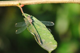 Der frisch geschlüpften Libelle sieht man die spätere Farbgebung noch nicht an. (10.06.2016)