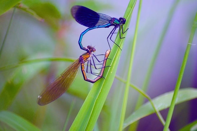 Häufig sind bei Libellen die Männchen auffällig bunt und glänzend gefärbt, um bei den „Damen“ Eindruck zu machen.