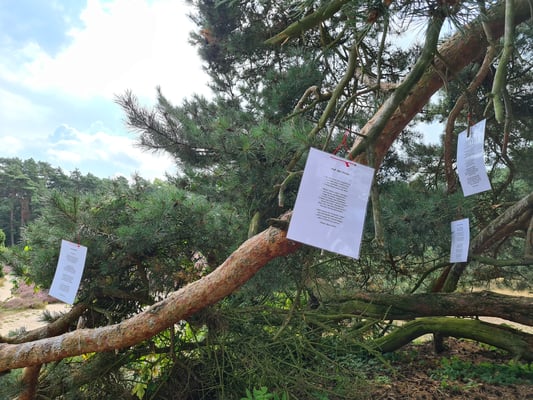 Fotos: (K. Geilen)weitere Stationen unserer Rallye, wie die Birke und ihre besondere Rinde, die große Kiefer mit vielen Heide-Gedichten und die Bienenstöcke