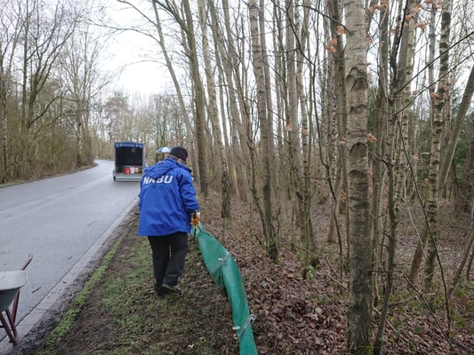 Amphibienschutz bedeutet neben dem Erhalt ihres Lebensraumes auch ganz praktische Hilfe: Jedes Frühjahr bauen freiwillige Helfer unter der Leitung von Beate Wember Krötenzäune auf und tragen in den folgenden Wochen Frösche und Kröten über die für sie gefährlichen Straßen.